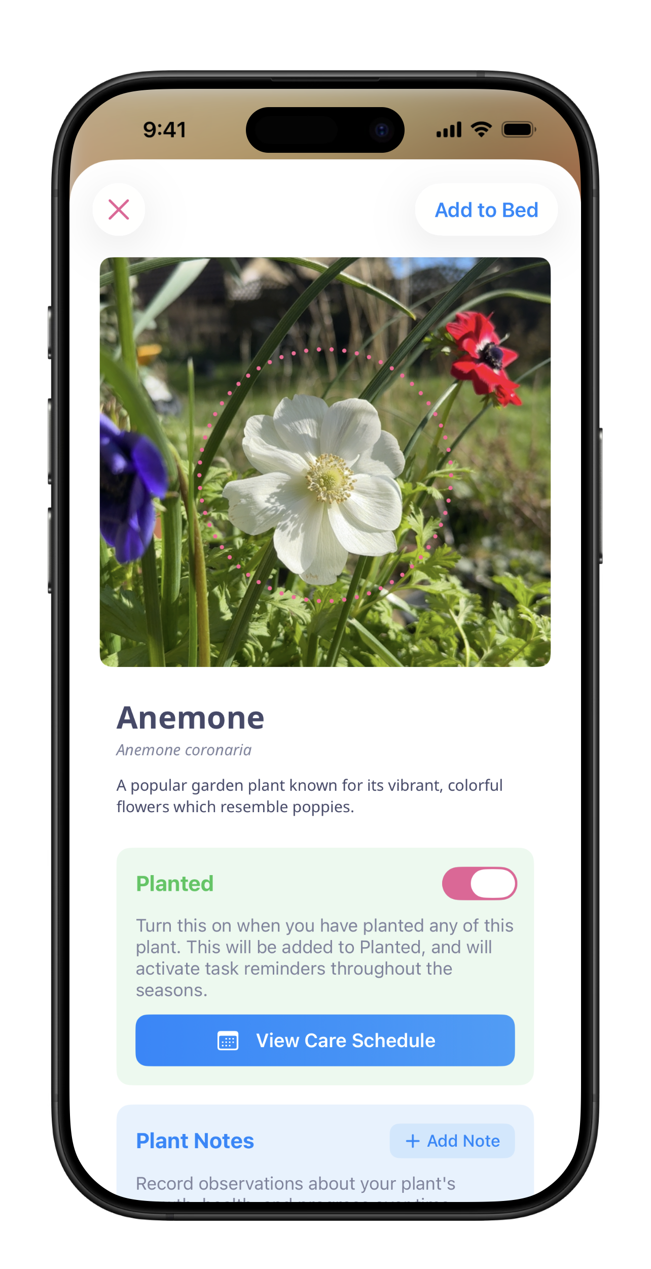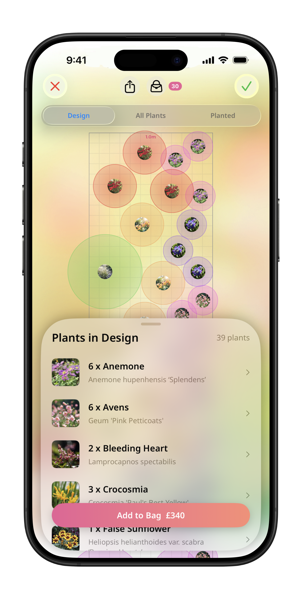 Discover your garden soil type using Soil ID. Choose a style or colour palette for your bed, and let Hota recommend a plant design for your space.